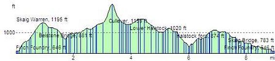 Cullever, 1159 ft | 283°M | 0.568 Mi | 0 ft | 0:14 (12:22) | Clapper bridge | |